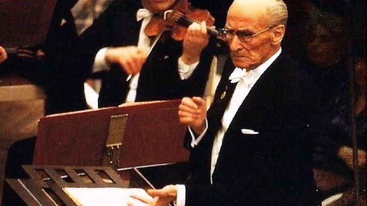 Conmemoramos el 35 aniversario de la muerte del director Yevguéni MRAVINSKI con obras de Chaikovski -Finale de la Sinfonía n° 5-, Prokófiev -Danza de los caballeros del ballet "Romeo y Julieta"-, Shostakóvich -Finale de la Sinfonía n° 5-, Musorgski -Preludio de la ópera "Jovánschina"-, Beethoven -Allegro de la Sinfonía n° 4-, y Stravinski -Paso a dos del ballet "Apolo y las musas" -.