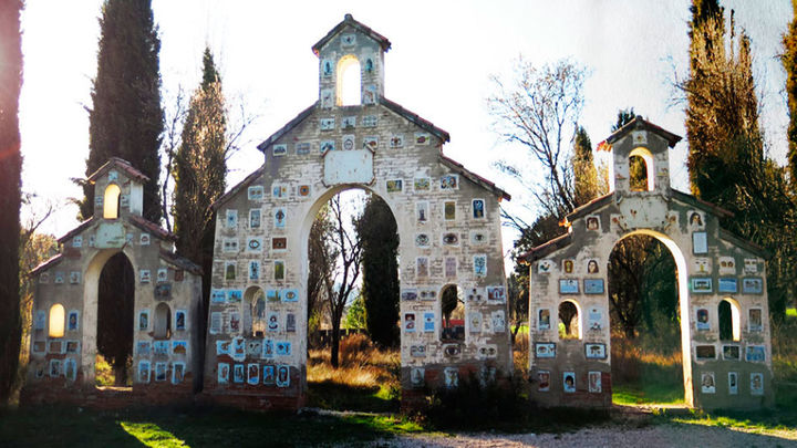 Visitamos Ambite, situada en la vega del Tajuña, muy cerca de la provincia de Guadalajara. Le rodea una preciosa senda ecológica y numerosos campos de cultivo regados por el río. La localidad nos recibe con un monumento hermoso e inquietante: cientos de ojos nos acompañan al cruzar los arcos de entrada al pueblo.