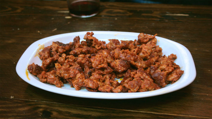 No es para todos los paladares, pero el agasajo madrileño no estaría completo sin unas gallinejas, eso sí, fritas en su propio sebo, nada de otros aceites, nos aclara Miguel Ángel.