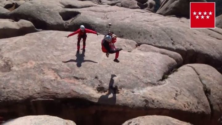 Los bomberos rescatan en La Pedriza una perrita. Su dueño, Diego Rodríguez, está muy agradecido.