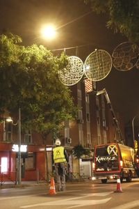 Las cuadrillas de Ximénez Iluminaciones trabajan a contrarreloj en las instalaciones del alumbrado navideño un año más en el que se ha adelantado, y mucho, su colocación por los barrios de la capital.