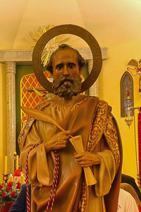 En este templo se celebra al día siguiente una solemne Eucaristía en honor al santo. A su término, la talla es llevada de regreso en procesión hasta la iglesia antigua, amenizada por la Banda de Tambores y Dulzainas de San Lucas.