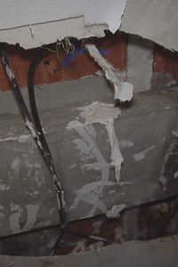 Uno de los espacios más afectados es un cuarto comunitario donde se guardaban planos y documentos del edificio, ahora completamente arruinados. Luis Miguel nos explica que "toda esta agua viene de las canalizaciones de las antiguas minas que conducían el agua de los pozos en Ciempozuelos. El agua no está bien canalizada y se filtra por donde puede hasta salir aquí".