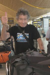 "A ver si tenemos un poquito de suerte. Tengo buenísimos acompañantes, los mejores del mundo. Luis y yo hemos estado en muchas montañas juntos. Y Pedro también es un gran amigo", declara Carlos Soria momentos antes de coger el avión.