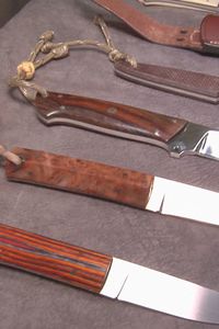 No contento con dar un pulido y acabado a las hojas de los maestros cocineros, José también crea piezas de coleccionista con sus propias manos a partir del acero como este espectacular cuchillo Bowie.