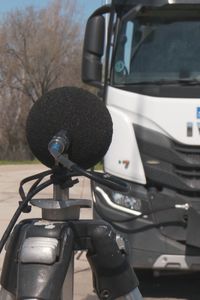 Esta disposición permite captar con precisión el sonido emitido por el camión desde diferentes ángulos, garantizando que la medición sea lo más exacta posible.
