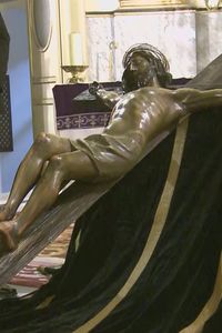 La iglesia parroquial de San Ildefonso y Santos Niños Justo y Pastor, ubicada en la calle Colón, 16, ha acogido este viernes de Cuaresma un Vía Crucis penitencial organizado por la Hermandad de la Borriquita.