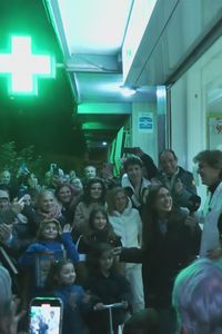 Una multitud se ha congregado a las puertas de la farmacia para dedicarle una fuerte y sentida ovación, un gesto espontáneo cargado de gratitud.
