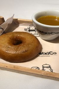 Para complementar esta deliciosa creación, cada donut se sirve acompañado del caldo del cocido y lleva como topping un glaseado de bacon ahumado que añade un toque extra de sabor.
