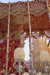 Tras la salida del Cristo, la María Santísima de las Lágrimas y del Consuelo realiza su entrada a la calle desde la Iglesia del Convento de las Carmelitas Descalzas de la Purísima Concepción, completando la procesión de la Hermandad del Santísimo Cristo Atado a la Columna en Alcalá de Henares.