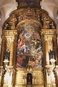 Una de las obras más impresionantes dentro de la iglesia es el cuadro de la Anunciación en el altar mayor, realizado por Claudio Coello. Este cuadro es notable no solo por su tamaño, sino porque representa el Misterio de la Encarnación, marcando un hito en la pintura española.