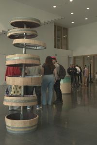 Por su parte, Marina ha presentado 'Lux ferre', que en latín significa 'soporte de luz'. "Estoy intentando representar aquí la descomposición de un ángel caído de las hadas a través de deconstruir una barrica de vino", comenta. Su obra consiste en crear dos abanicos iluminados que simulan el descenso del ángel, combinando arte y simbolismo en un concepto visual fascinante.