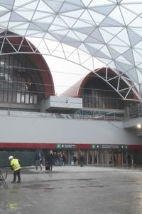 Los viajeros son ahora recibidos en la plaza de acceso por un nuevo espacio de espera de 1.325 metros cuadrados, cubierto por una espectacular estructura compuesta por siete pares de arcos.