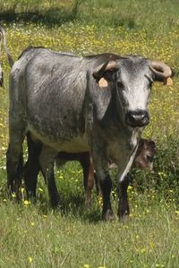 En esta época primaveral, la finca cobra vida con un lote de vacas madre y sus terneritos, mientras el semental se prepara para la época de cubrición. La ganadería se especializa en encastes Santa Coloma, una variante del toro bravo que actualmente se encuentra en peligro de extinción. "Nuestra ganadería es de encaste Santa Coloma, considerado minoritario, y en el campo es la verdad que muy bonito", explica Guzmán.