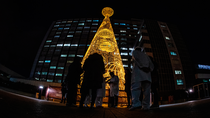 Un abeto navideño de 15 metros de altura ilumina la entrada del Hospital de la Paz para rendir homenaje a los sanitarios y todo el personal de los hospitales que están trabajando tan duro durante la pandemia. El abeto cedido por Loterías y Apuestas del Estado es el mismo que años atrás estuvo instalado en la Puerta del Sol.