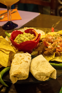 - SEGUNDOS: Costillas de cerdo con mole y arroz a la mexicana o enchiladas de chile guajillo.