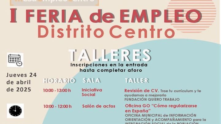 Se celebrará el jueves 24 de abril en el Parque Casino de la Reina, en Lavapiés, en horario de 10 a 14h. Entre los talleres que se impartirán, habrá uno sobre entrevistas de trabajo, hacer CV y usar la IA.