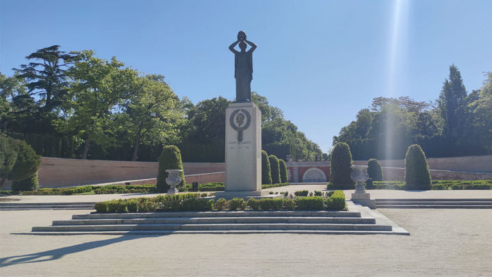 Diez escalones sostienen el pedestal de la escultura ecuestre de Alfonso XII, una obra de Mariano Benlliure