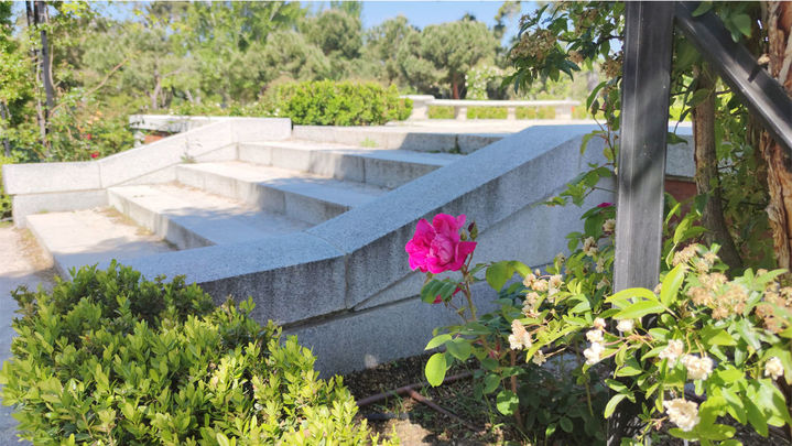 Escalones rodeados de rosas en La Rosaleda del Retiro |Estefanía Esteban