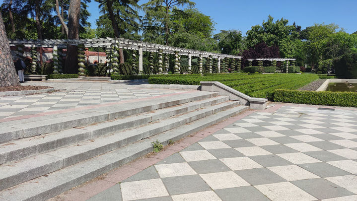 A lo largo de todo el parque de El Retiro podemos encontrarnos con pequeñas escaleras de apenas tres o cuatro escalones que nos brindan la oportunidad sin embargo de contemplar un espectáculo inolvidable. Es el caso de la Rosaleda o los Jardines de Cecilio Rodríguez.
