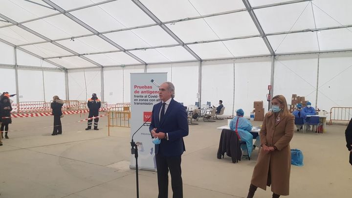 El consejero de Sanidad de la Comunidad de Madrid, Enrique Ruiz Escudero se ha acercado hasta Collado Villalba donde se están realizando tests de antígenos de la Covid-19.
