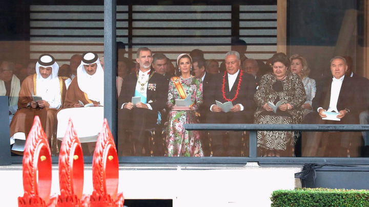 Los aproximadamente 2.000 invitados, entre representantes políticos nipones y dignatarios internacionales, contemplaron esta escena desde otras estancias del palacio y a través de ventanales al otro lado del patio del Palacio Imperial o de pantallas, debido al reducido tamaño de la Sala del Pino.