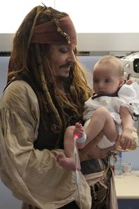 Johnny Depp visita a los niños de un hospital de San Sebastián caracterizado de Jack Sparrow