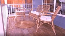 Llamativo también el porche de la entrada, "muy americano"., y la enorme enredadera que cubre una de las fachadas de la casa. En verano, está cubierta de hojas verdes y en otoño, se tornan rojizas.