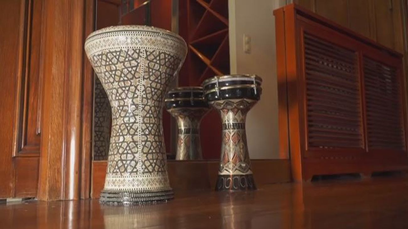 Los dos salones están presididos por mesas y sillones elaborados a mano de forma artesanal en Siria.