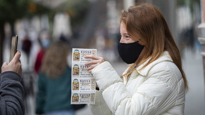 Mujer con mascarilla y décimos de Lotería |EUROPA PRESS