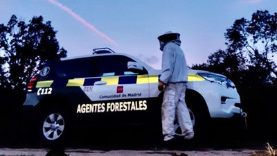 Agentes forestales de la Comunidad retiran un nido de avispones en Alameda del Valle Alameda del Valle Agentes forestales de la Comunidad retiran un nido de avispones en Alameda del Valle