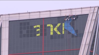 La estrella azul de CaixaBank ya luce en las Torres Kio Telenoticias Fin de Semana La estrella azul de CaixaBank ya luce en las Torres Kio