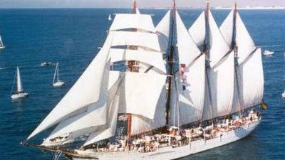 Despedida multitudinaria en la ría de Ferrol al Juan Sebastián de Elcano Buque escuela Juan Sebastián Elcano Despedida multitudinaria en la ría de Ferrol al Juan Sebastián de Elcano
