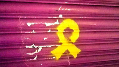 Granollers: Pintan un lazo amarillo en el comercio de la madre de Rivera Nacional Granollers: Pintan un lazo amarillo en el comercio de la madre de Rivera