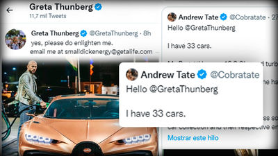 El rifirafe viral de Greta Thunberg y Andrew Tate a propósito de los 33 coches del kickboxer El rifirafe viral de Greta Thunberg y Andrew Tate a propósito de los 33 coches del kickboxer 28/12/2022
