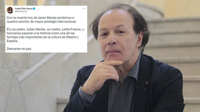Ayuso lamenta la muerte de Javier Marías: "Perdemos a nuestro escritor de mayor prestigio internacional" Javier Marías Ayuso lamenta la muerte de Javier Marías: "Perdemos a nuestro escritor de mayor prestigio internacional"