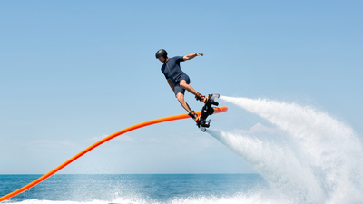 Volamos sobre el agua del embalse de Los Ángeles de San Rafael Ocio Practicamos flyboarding en Segovia