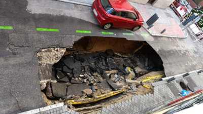 La rotura de una tubería causa una fuga de agua y un socavón de 8 metros en Madrid Centro La rotura de una tubería causa una fuga de agua y un socavón de 8 metros en Madrid Centro 28/11/2022