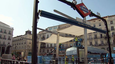 Los primeros toldos gigantes ya dan sombra en la Puerta del Sol Los primeros toldos gigantes ya dan sombra en la Puerta del Sol 18/06/2025