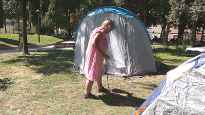 Los desalojados del bloque La Dignidad en Móstoles acampan en busca de alternativas Móstoles Acampan frente a los juzgados tras su desalojo