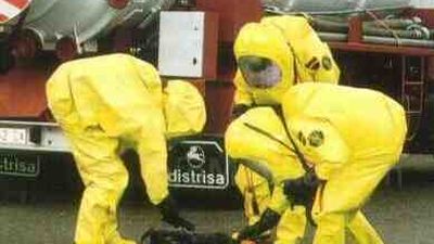 Bomberos NBQ evitan el vertido de ácido fosfórico en la R-2 Madrid Bomberos NBQ evitan el vertido de ácido fosfórico en la R-2