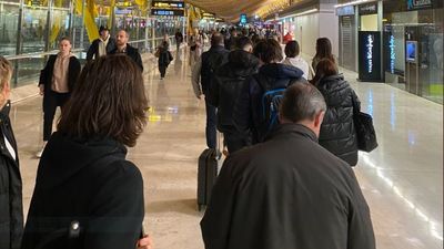 Largas colas de pasajeros en el aeropuerto de Barajas por la huelga de vigilantes Aeropuerto Adolfo Suárez Madrid Barajas Largas colas de pasajeros en el aeropuerto de Barajas por la huelga de vigilantes